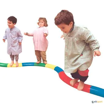 Pasillo recto o curvo para trabajar con los alumnos situaciones de equilibrio, desplazamientos sobre superficies elevadas, sensaciones plantares, para delimitar espacios, etc. Los pasillos semicilíndricos tienen la mitad de altura que los rectilíneos, debido a su mayor dificultad.