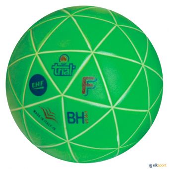 Fabricado por la marca italiana Trial, Trial es el proveedor oficial de la Federación Europea de Balonmano (EHF). Balón de triple capa. La capa interna garantiza la esfericidad, la capa externa (en goma-caucho natural) le aporta un toque incomparable y agarre extraordinario a pesar de la arena, la arena tiende a caer por las líneas triangulares, dejando la superficie del balón perfectamente limpia.