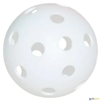 Bola de floorball de competición, más rápida y dura que las bolas de entrenamiento o iniciación. Resiste al ser pisada sin romperse.