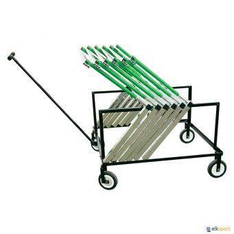 Carro para vallas de atletismo fabricado en acero y recubierto de pintura en polvo para mayor durabilidad. Se puede trasladar cómodamente gracias a sus 4 ruedas de 20 cm de ø, 2 de ellas fijas y 2 giratorias para facilitar su desplazamiento.