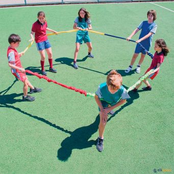 La banda cooperativa te permite realizar ejercicios de expresión corporal grupales, por lo que se trata de un instrumento idóneo para clases de Educación Física en escuelas y centros deportivos.