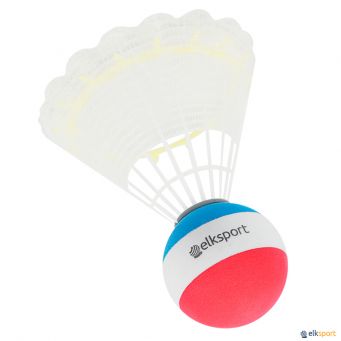 Volante de shuttleball, de mayores dimensiones que un volante de bádminton. Puede jugarse también con la mano. Incluye un protector del faldón para transporte y almacenaje. Disponibles plumas de recambio.