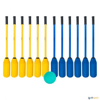 · 12 Mazas con base flexible: 6 amarillas y 6 azules / 79 cm de longitud.