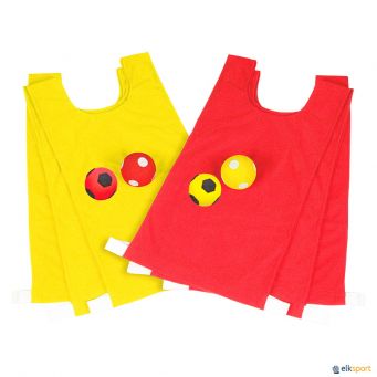Petos dianacon una superficie exterior donde se puedan adherir las pelotas de velcro. Esto posibilita muchas actividades y juegos de precisión, en estático, o en movimiento, individualmente o en equipos.