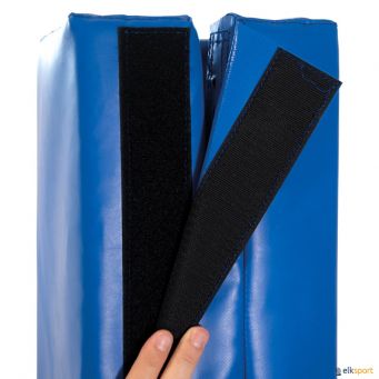 Protección rígida cuadrada para poste de canasta de baloncesto. Válida para postes cuadrados hasta 10 cm de lado. Una sola pieza con cierre mediante solapa más velcro. Rellena de polietileno de 4,5 cm de espesor.