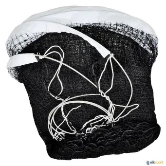 Red ligera para dividir grandes espacios y poder trabajar muchos jugadores al mismo tiempo. En nailon negro, cinta PVC y cable de acero galvanizado. El cable tiene una longitud 280 cm mayor que la red para permitir la sujeción de la red.