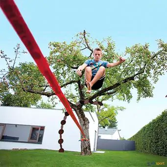 La cinta ligeramente elástica, se ata a 2 puntos fijos a una altura de 40 cm a 1 m y en 5 minutos ya se puede realizar equilibrios, recorridos hacia delante y hacia atrás, cruces, saltos, medios giros, giros completos... Las figuras y los juegos son muchos. Todos los artículos Slacklstar están certificados por TÜV / GS.