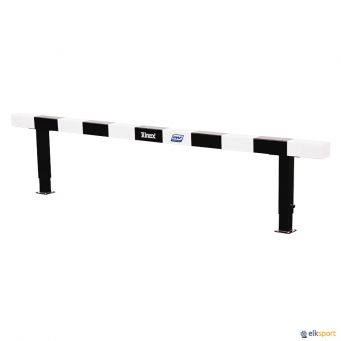 Valla obstáculo de ría plegable de alta resistencia para competiciones de atletismo certificada por World Athletics. Fabricada en tubo cuadrado cubierto con madera contrachapada sólida, gruesa e impermeable. Patas y bases fabricadas en tubo cuadrado de acero con sistema de bloqueo a presión con resorte para un fácil ajuste a las tres alturas requeridas. Las patas se introducen en un cajetín fijado en el suelo. Pintada con pintura de poliuretano de primera calidad para una mayor vida útil y durabilidad. Fácil de instalar y plegable para facilitar el transporte.